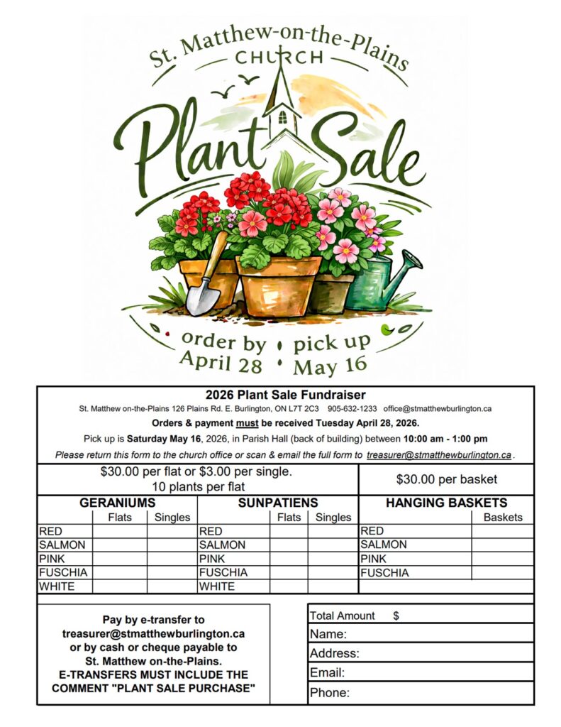 Donate via e-transfer to: treasurer@stmatthewburlington.ca